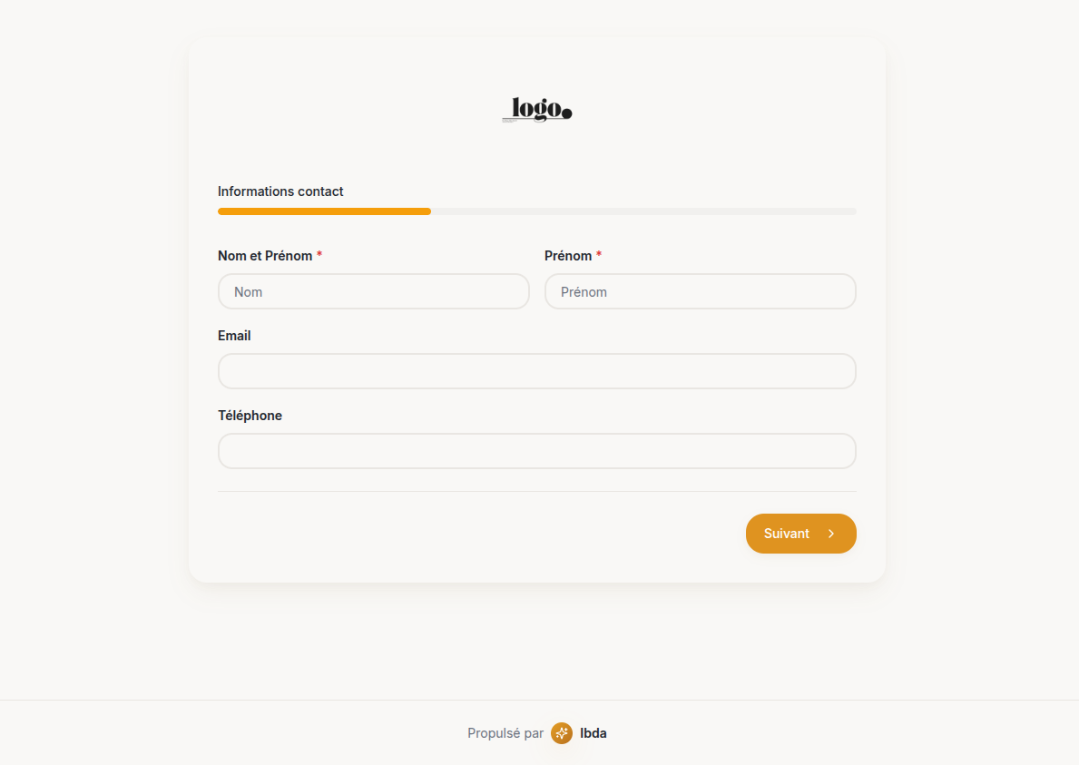 Personnalisez un formulaire multi-étapes à votre image en quelques minutes. Choisissez vos champs, vos couleurs, votre logo. Partagez le lien à vos prospects par email, Instagram ou votre site.